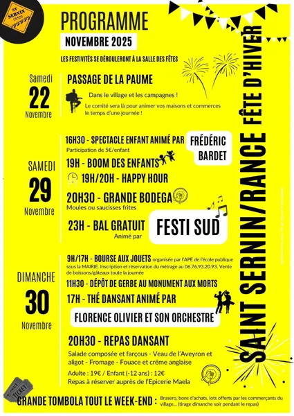 20h30 : Repas dansant : Salade/farçous, Veau de l’Aveyron et aligot, fromage, fouace /crème anglaise, vin et café