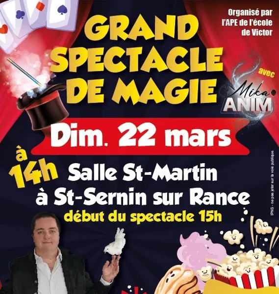 L’APE de l’Ecole de Victor a le plaisir de vous inviter à un grand spectacle de magie à la salle des fêtes avec Mika Anim’. Au programme : tours de cartes étonnants, des colombes, des illusions… De quoi émerveiller petits et grands !