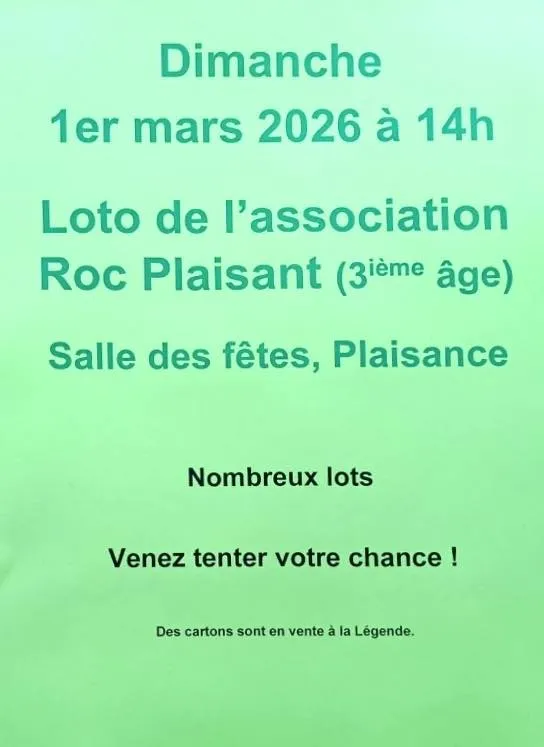 Venez nombreux au Loto de l’association du Roc Plaisant !