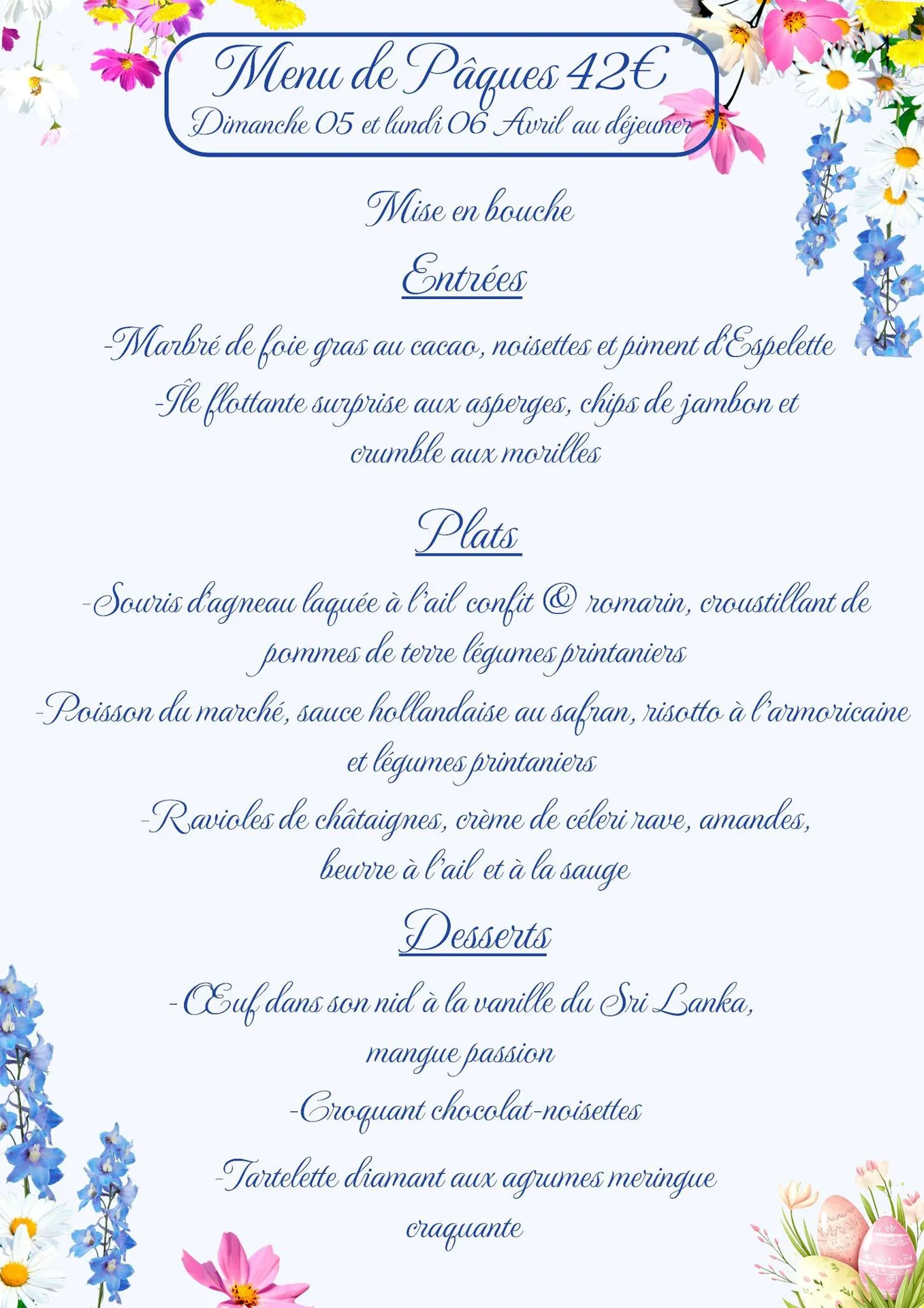 Menu de Pâques: